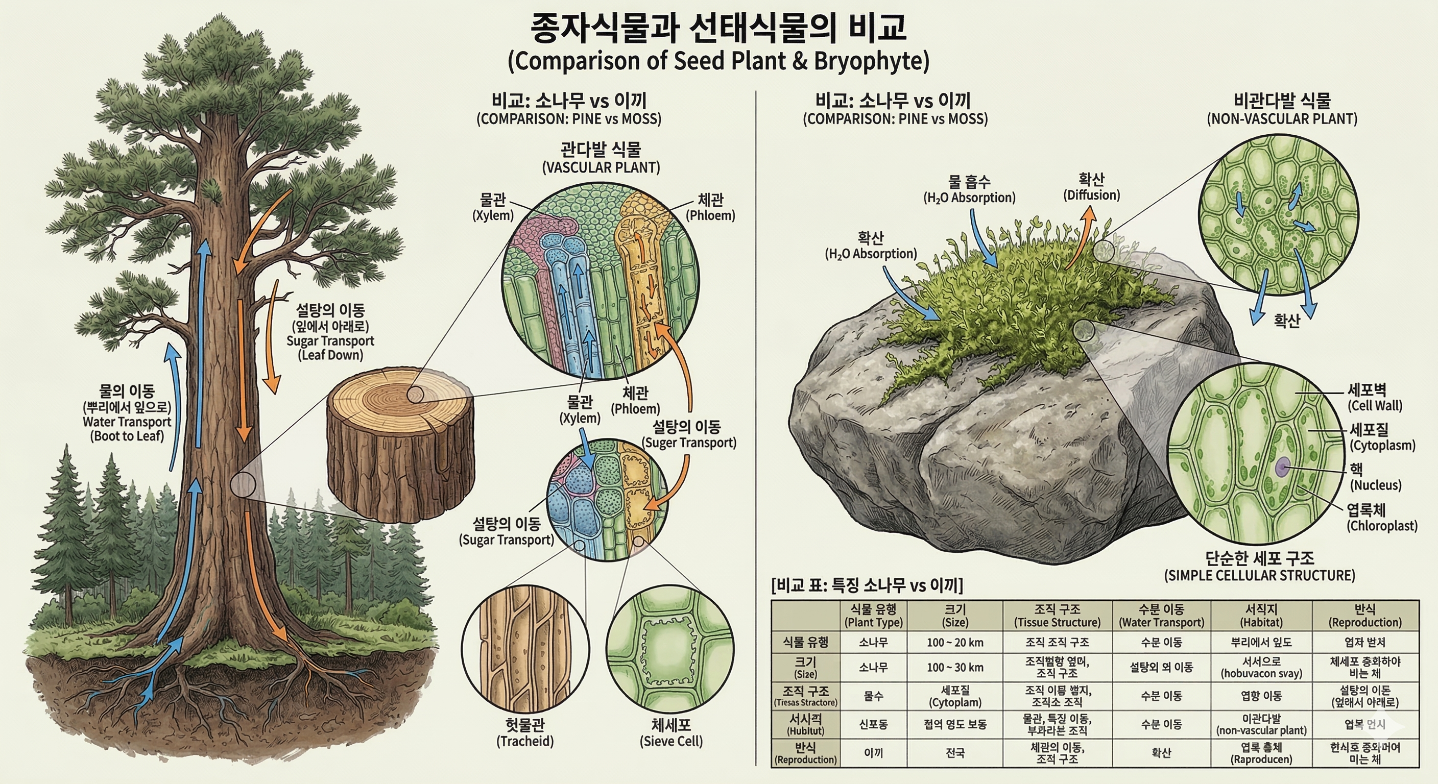 2. [식물] 운반 통로의 유무: '종자식물문' vs '선태식물문'